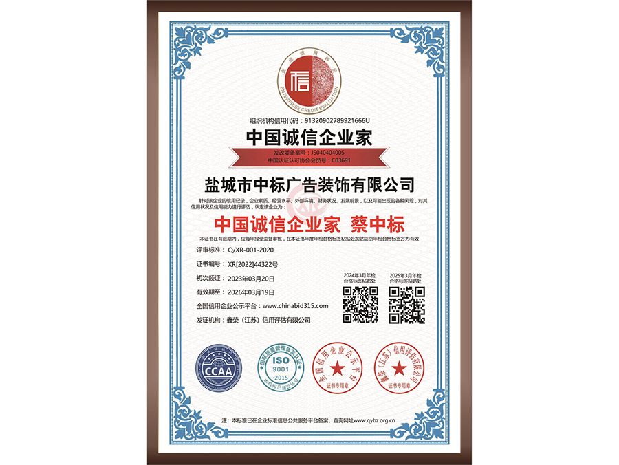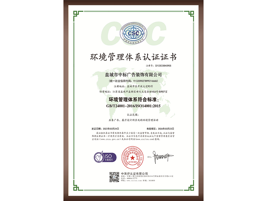 環(huán)境管理體系認(rèn)證證書