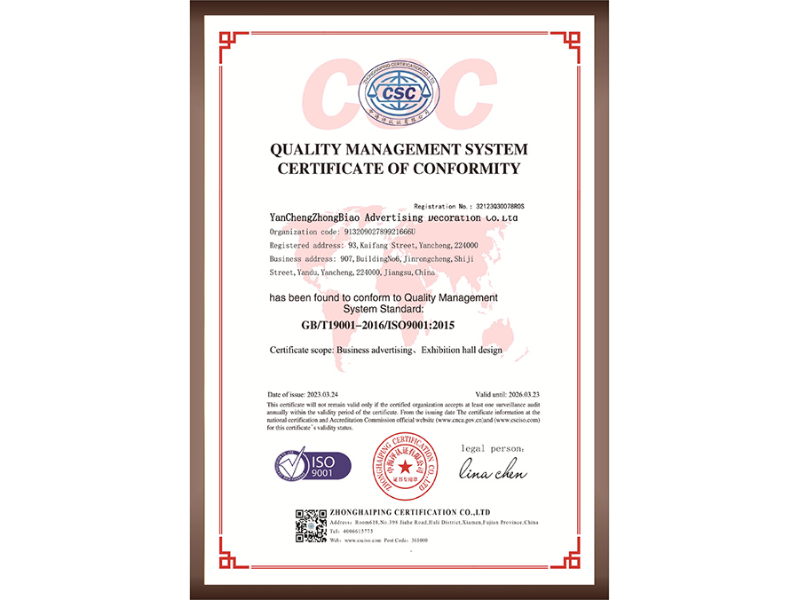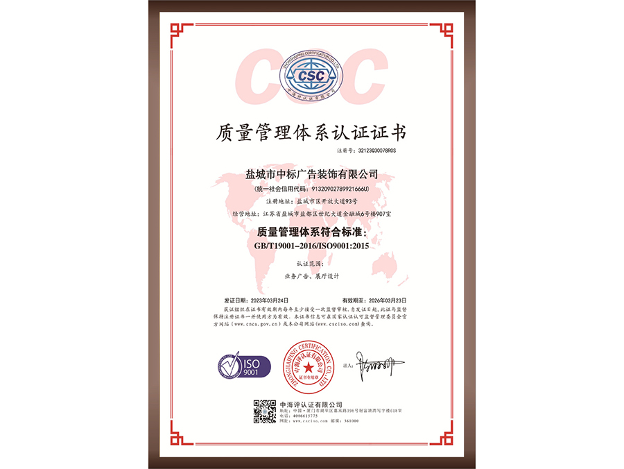 質(zhì)量管理體系認(rèn)證證書